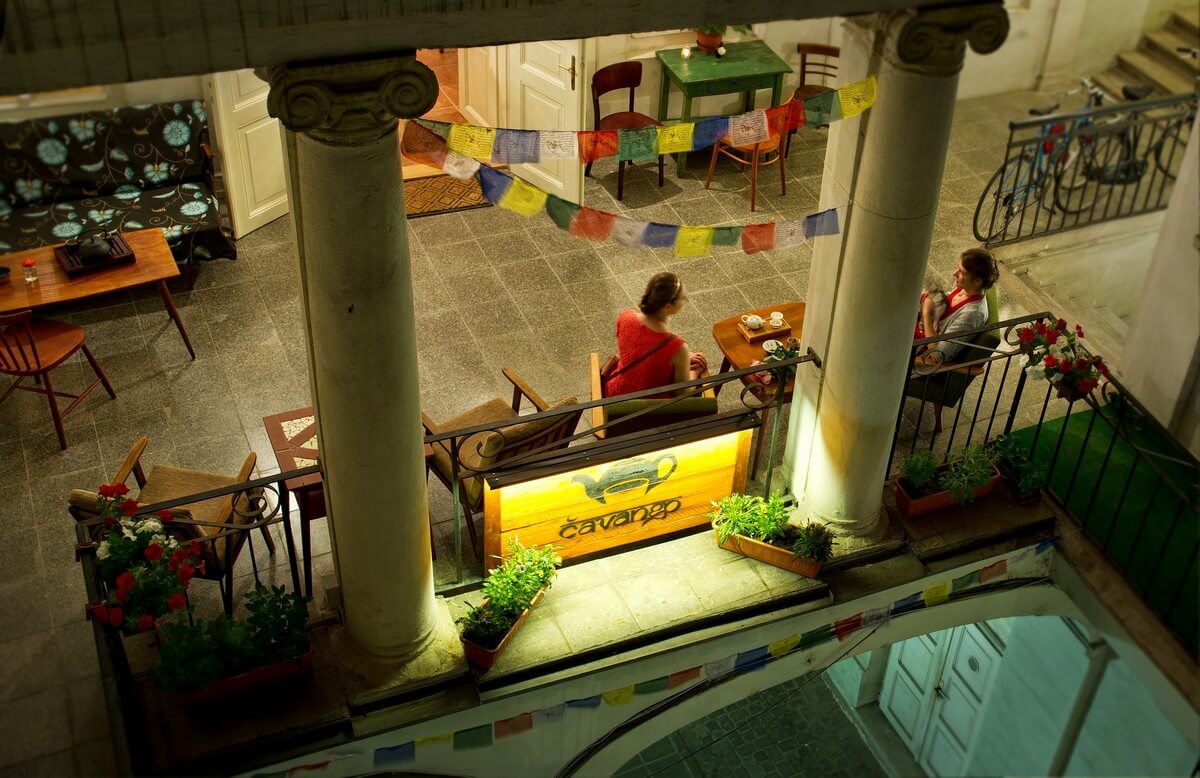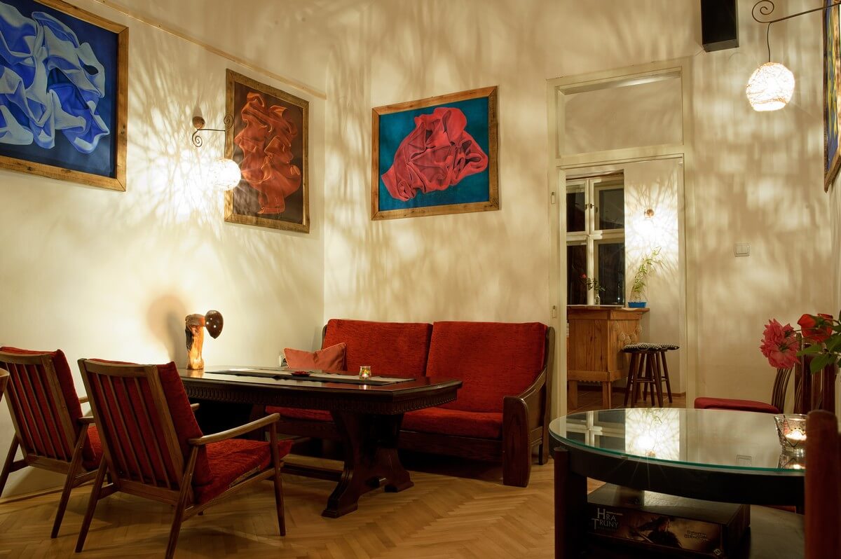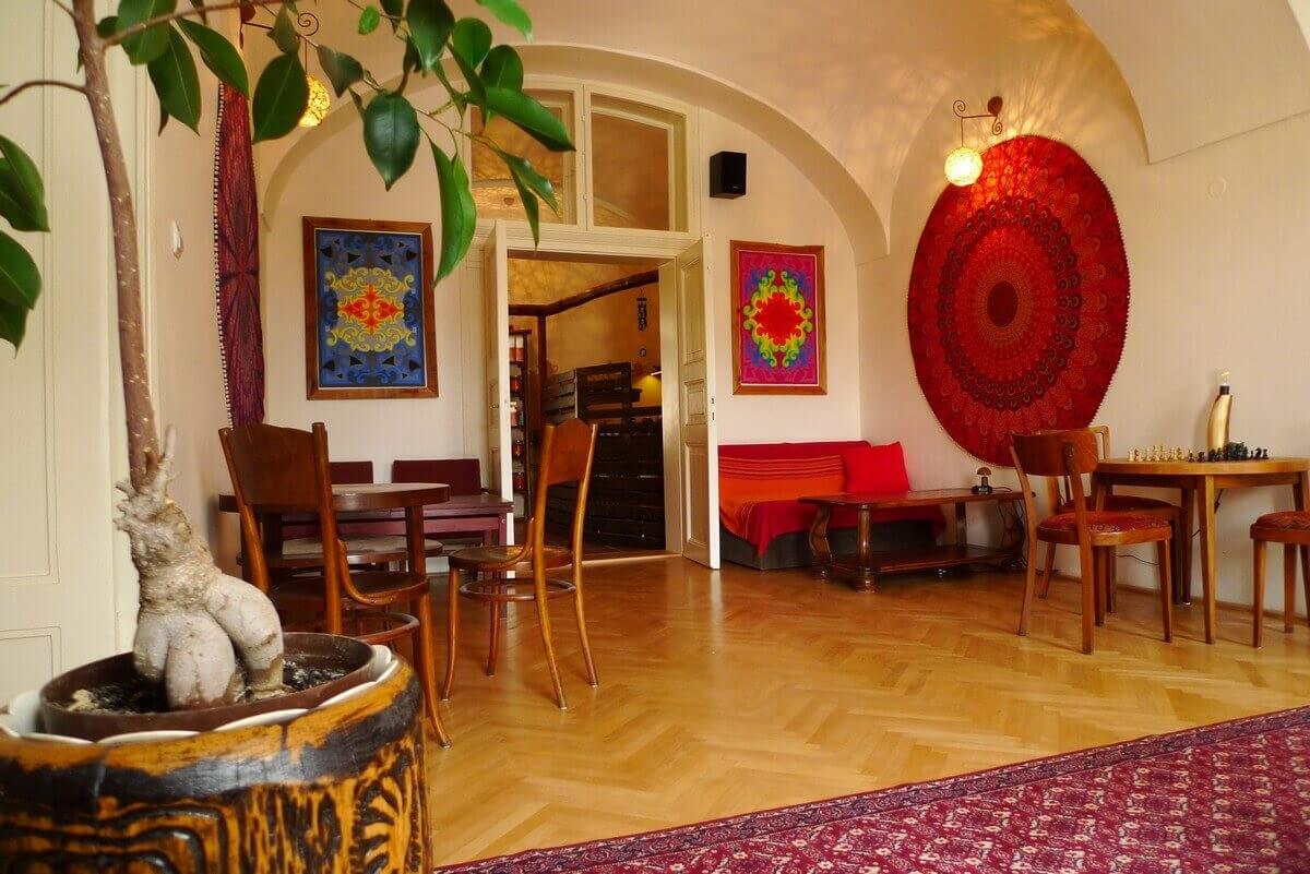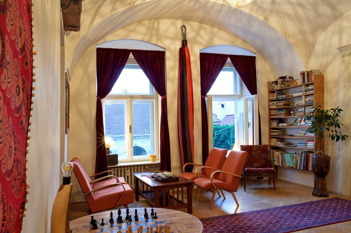 Veľké stoly vám umožnia hrať stolové hry s väčšou skupinou vašich kamošov. Na obrovskom pódiu máte parádny výhľad na dvor a môžete sa kreatívne vyžiť v akomkoľvek smere, či už hudobnom, literárnom, vedeckom, užiť niektorý z našich nečakaných filmových večerov alebo cestovateľských dobrodružných prednášok. Alebo sa len jednoducho vystrieť.